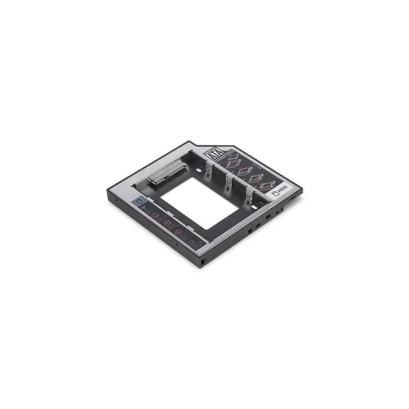 Rama montażowa dla dysku twardego 2,5” SATA (HDD) i SSD; Sprawdza się w przypadku wszystkich portów napędu SATA z wysokością 12,7mm; Uniwersalny uchwyt osłony umożliwia indywidualne, optyczne dopasowanie; W celu lepszego odprowadzania ciepła rama zbudowana jest z aluminium; Wymiary: 129 x 128 x 12,7mm; Obsługa Windows 10, 8.1, 8, 7, Vista, XP i Linux; Kompatybilne z SATA, SATA II i SATA III; Kompatybilna z nowymi modelami między innymi firm HP, DELL, ACER, BenQ,Asus W zestawie instrukcja obsługi i śrubokręt do prostego montażu;