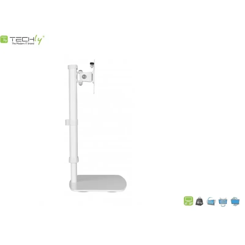 Uchwyt biurkowy Techly 17"-27", 6kg pionowy. Kolor: Biały. Zwiększa funkcjonalność i komfort użytkowania komputera lub monitora.