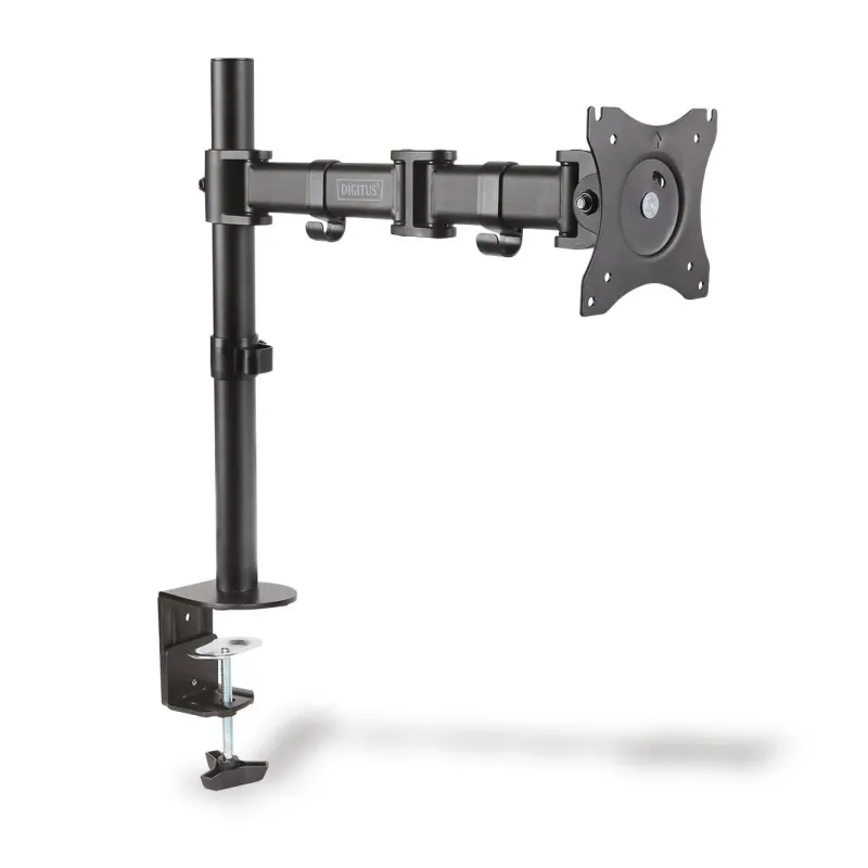 Stojak biurkowy pojedynczy z zaciskiem DIGITUS, 1xLCD, max. 27", max. 8kg, uchylno-obrotowy 360° (PIVOT) z kategorii akcesoria do monitorów, komputerów i tv. Kolor: Czarny.
