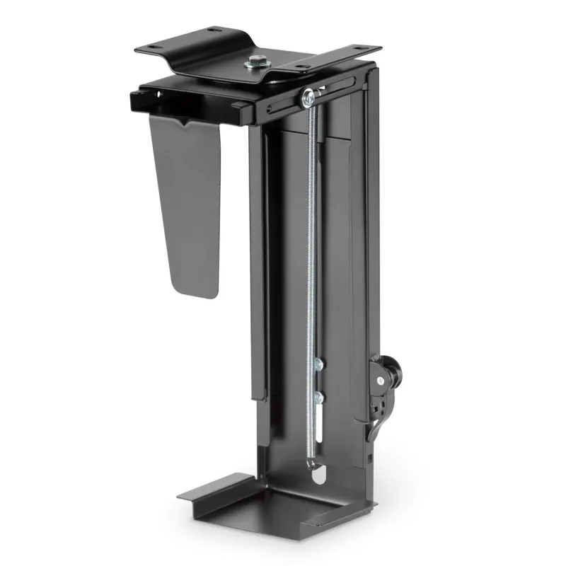 Easy locking – beznarzędziowa i bezpieczna regulacja wysokości Płynna regulacja na wysokość i na szerokość Pasuje idealnie do różnych rozmiarów obudów komputerowych Możliwość obrotu o 360° – łatwy dostęp do wszystkich złączy z tyłu Montaż pod stołem: Oszczędza miejsce i ułatwia czyszczenie miejsca pracy Wytrzymała konstrukcja stalowa dla długiego okresu użytkowania Regulacja wysokości: 30–51cm Regulacja szerokości: 8,8 – 20,3cm Kąt nachylenia: 360° (od +180 do -180°)