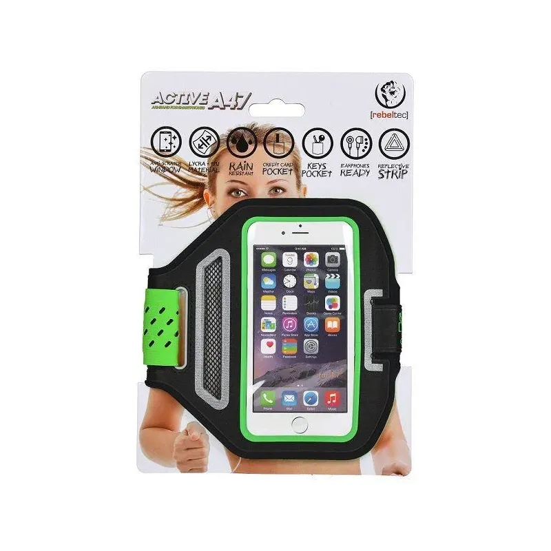 Etui/opaska na telefon Rebeltec Active A47 na ramię maksymalny rozmiar telefonu 14,0 x 8,1cm z kategorii akcesoria do urządzeń mobilnych. Kolor: Czarno-zielony.