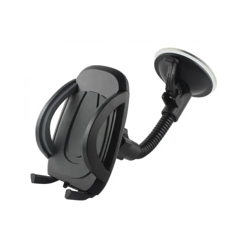 Długość ramienia 172mm, rotacja uchwytu 360 stopni uniwersalny - szerokość smartphonów od 55-85mm maksymalna masa smartphona 200g mocowanie do szyby poprzez przyssawkę z pompką wąskie ramiona nie zasłaniają ekranu smartphona wszystkie elementy styku z smartphonem zabezpieczone miękką gumą