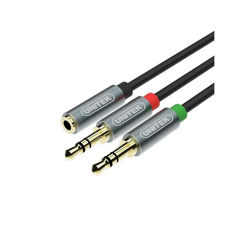 Kabel Unitek Y-C957ABK miniJack 3,5mm (F) - 2x 3,5mm (M) to kabel audio/video o długości 0.20 m. Przesyła sygnał audio lub wideo między urządzeniami.