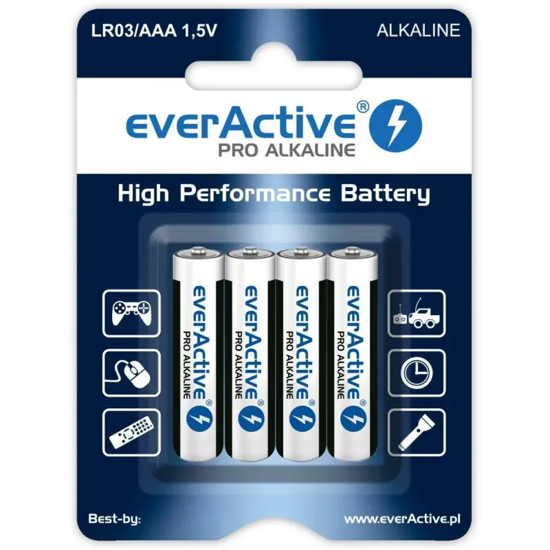 Najmocniejsza seria Pro Alkaline gwarantuje najwyższy poziom wydajności Wysoka odporność na wylewanie Długi okres przydatności przy zachowaniu wysokich walorów użytkowych Wysoka wydajnośćzarówno w urządzeniach o niskim i wysokim poborze prądu Szczególnie polecane do zastosowań przemysłowych i profesjonalnych Wzmocniona, uszczelniona konstrukcja Wysoka niezawodnośći powtarzalność parametrów