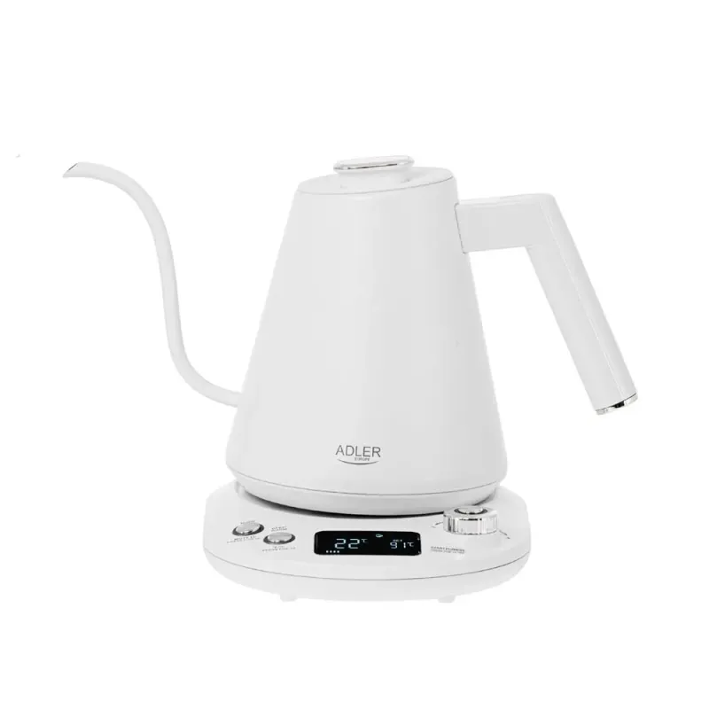 Pojemność max: 1,0 L Funkcja podtrzymania temperatury Funkcja utrzymania temperatury przez maksymalnie 120 minut Wymiary produktu: 30,0 x 20,0 x 17,0cm Moc maksymalna 1100W Pojemność min: 0,2 L Płaska grzałka ze stali szlachetnej wysokiej jakości ygnał dźwiękowy przy uruchamianiu i po zagotowaniu wody Regulacja temperatury gotowania Wyświetlacz LED wskazujący aktualną temperaturę Długa szyjka czajnika zapewnia wygodne użytkowanie