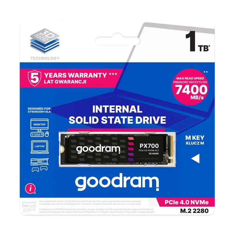 visibility favorite favorite_border Dysk SSD GOODRAM IRDM PRO GEN 5 1TB PCIe NVMe 2.0 M.2 2280 (11500/9000) 3D 1 088,99 zł Dodaj do koszyka