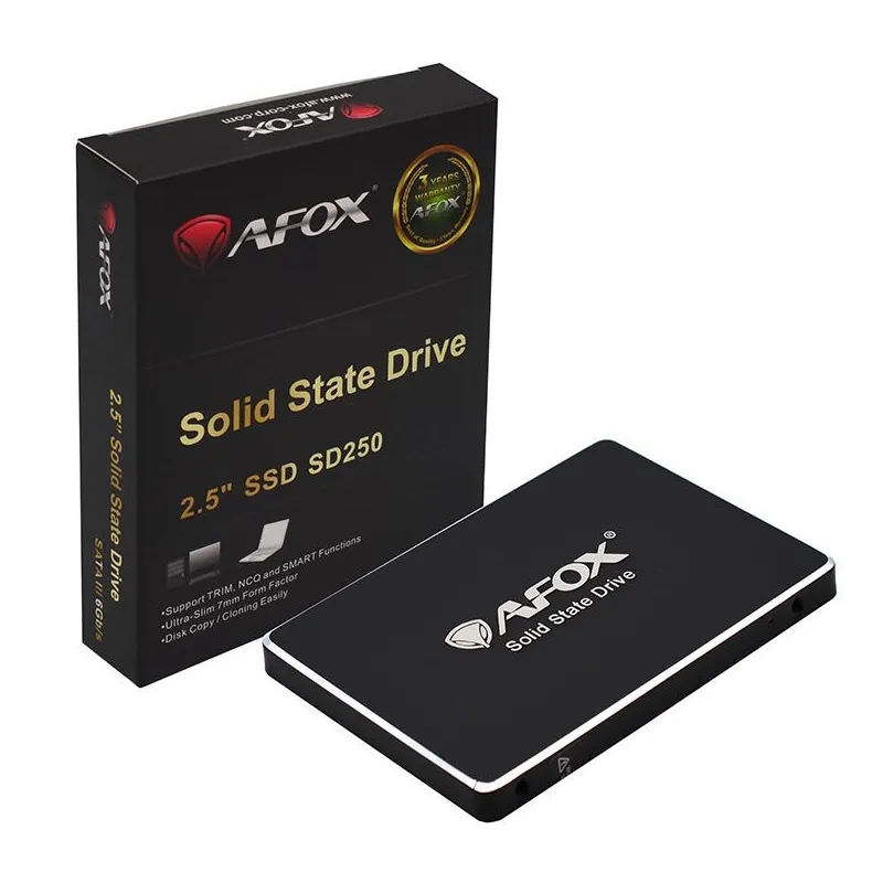 AFOX 2,5'' SATA III 6G/s SSD oferuje niewiarygodnie szybkie prędkości transferu, duże pojemności do 128 GB, kompaktową i lekką konstrukcję, odporność na wstrząsy i wibracje oraz obsługuje tryb DevSleep.