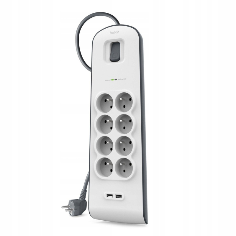 Belkin Listwa zasilająca przeciwprzepięciowa 900J, 8 gniazd, 2x USB-A, 2m