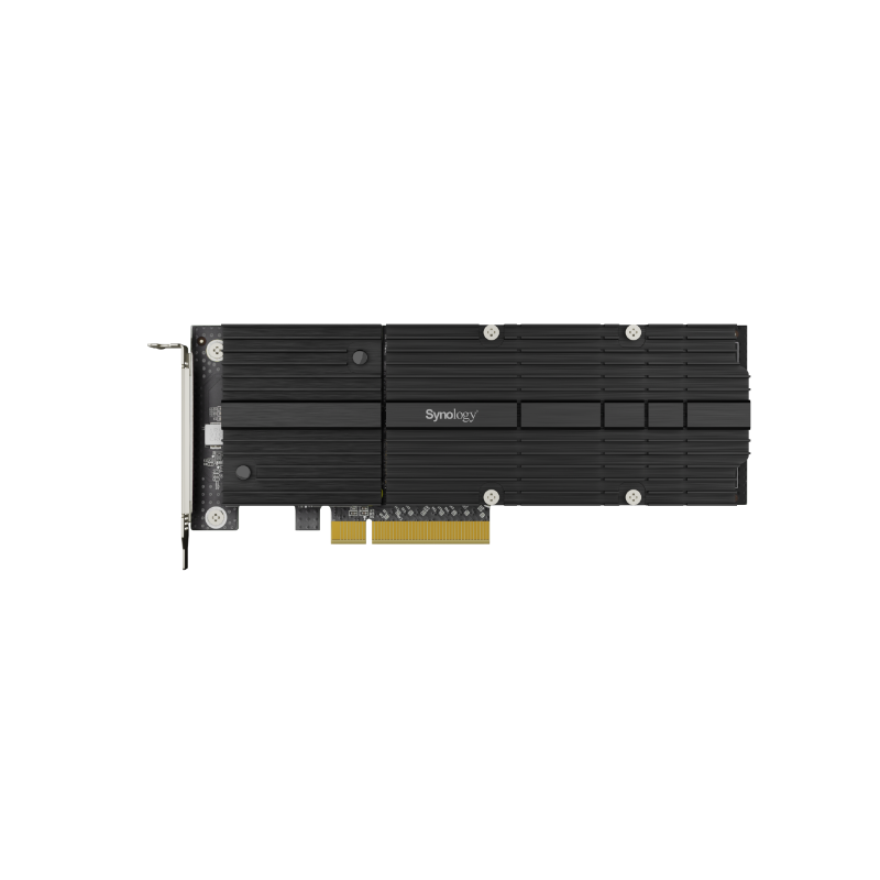 Zainstaluj dysk NVMe SSD Synology serii SNV3000 na karcie adaptera M2D20, aby szybko i sprawnie przyspieszać pamięć podręczną, a także w pełni wykorzystać trwałość, wydajność i niezawodność dysków Synology SSD klasy korporacyjne w serwerze Synology NAS.