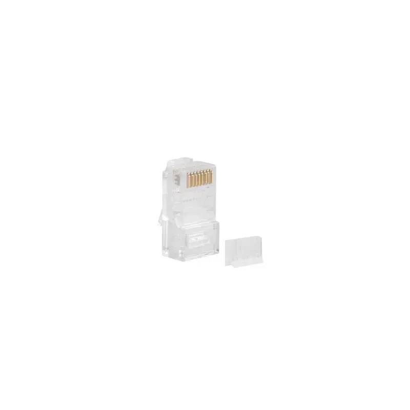 Zestaw 20 szt. nieekranowanych wtyków sieciowych RJ-45 [8P8C] kat.6, przeznaczonych głównie do kabli LAN UTP. Dodatkowo w zestawie każdy wtyk posiada prowadnicę ułatwiającą prawidłowe ułożenie kabla przed zarobieniem. Dzięki zastosowaniu potrójnych zębów (3prong) wtyki Lanberg pasują do obu rodzajów kabli - do drutu i do linki. Drut składa się z jednego kawałka drutu metalowego (zastosowanie przy instalacjach strukturalnych). Linka składa się z wiązki cieńszych drutów (zastosowanie patch cordy, mniejsze długości).