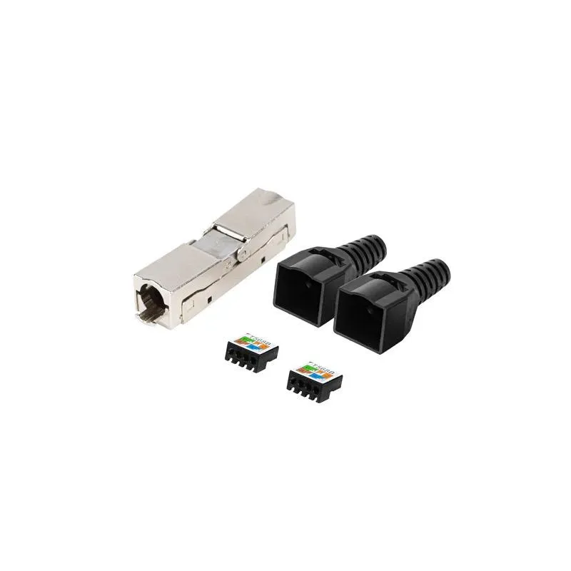 Łącznik sieciowy beznarzędziowy do kabli LAN marki Lanberg. Samozaciskowe złącze przeznaczone jest do szybkiego zarabiania na skrętce typu drut i linka. Konstrukcja beznarzędziowa pozwala na szybki montaż bez konieczności wykorzystania narzędzi. Miejsce połączenia zabezpieczone jest przed wysuwaniem się żył z uchwytów. Prowadnica, naklejka z kolorami, nakładka na kabel - to wszystko sprawia, że zarabianie kabla lan stało się proste. Cechy: - montaż beznarzędziowy - prowadnica kabli z kolorowym oznaczeniem - złącze jest w pełni zgodne z TIA/EIA-568A/B - kat.6 FTP Specyfikacja: łatwy montaż bez użycia narzędzi odpowiedni do drutu od AWG 26/1 do AWG 22/1. spełnia normy Class E ISO/IEC 11801 Ed.2.2.2011-06, DIN EN 50173-1:2011-09. regulowana tuleja, odpowiedni do kabla o średnicy od 6.0 do 9.0mm. temperatura pracy: -25 do 68, wilgotność: 85, ciśnienie: 70-106KPa. opór pośredni: 20M rezystancja: 1000M wytrzymałość na napięcie: DC 1000V (AC 700V) możliwość wielokrotnego użytku 3µ pozłacana powłoka z brązu fosforowego, trwałość: około. 750 cykli