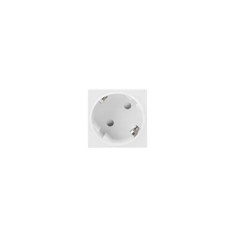 Pojedyncze gniazdo elektryczne typ SCHUKO. Przeznaczone są do montażu w ramkach wyposażonych w supporty, puszkach podłogowych, kolumnach wysuwanych z blatu oraz listwach i korytach naściennych przystosowanych do montażu osprzętu modułowego 45x45mm. - Standard 45x45mm 2M - Gniazdo wtyczkowe stałe - Do mocowania w korytach o wysokości 45mm - Beznarzędziowe - 250V, 50Hz, max 16A - Kolor biały - PC - poliwęglan ognioodporny