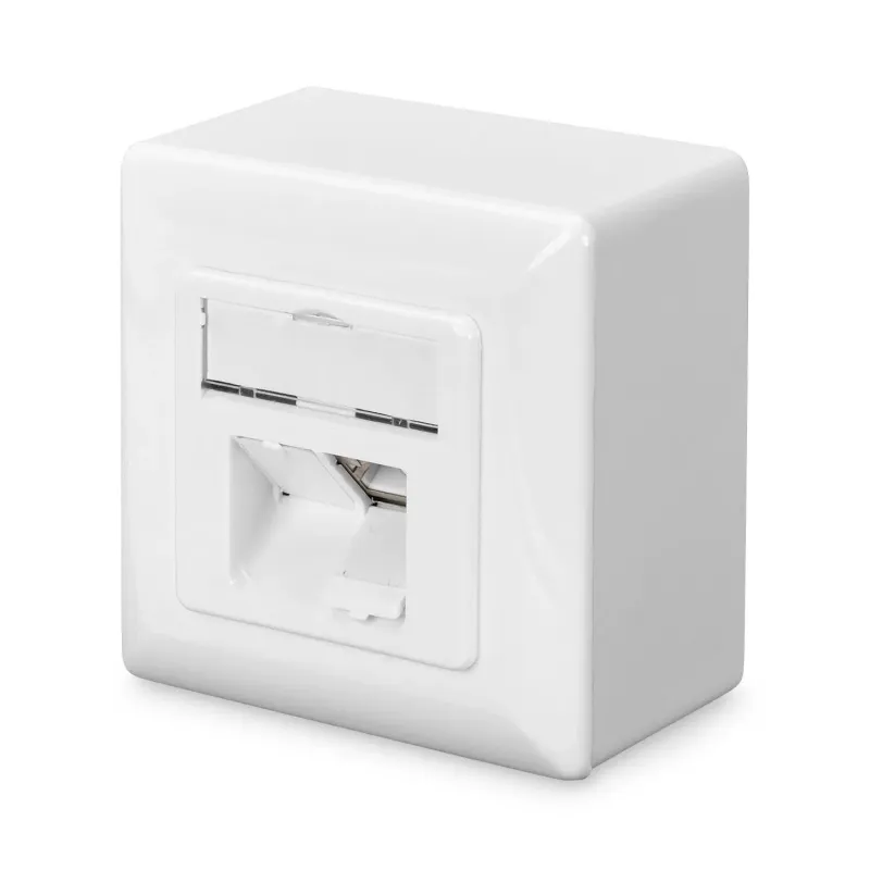 Kat. 6 do 250MHz, 1GBase-T Płytka środkowa: 50 x 50 mm Rama: 80 x 80 mm Płytka środkowa ze zintegrowanymi klapkami chroniącymi przed kurzem Normy: ISO/IEC 11801 2. edycja, EN 50173-1, EIA/TIA 568-C Instalacja kablowa poprzez LSA z kodem barwnym zgodnie z EIA/TIA 568 A/B Zintegrowana odciążka do kabli instalacyjnych Całkowite ekranowanie gniazd RJ45 oraz listw LSA dzięki kompletnej obudowie z metalowego odlewu ciśnieniowego Odciążający kąt gniazda 40° do kabli krosowych