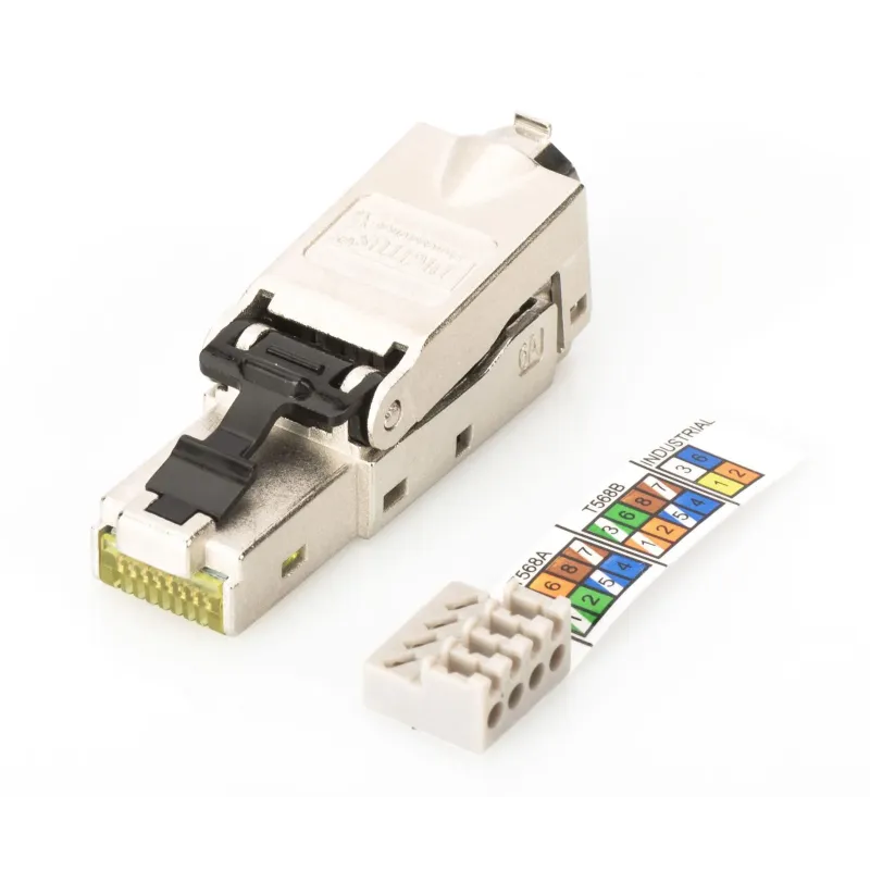 Wtyk RJ45 kat. 6A DIGITUS (8P8C) T568A/B 10GbE ekran., beznarzędziowy to złącze sieciowe kategorii 6a. Zapewnia niezawodne połączenie w infrastrukturze sieciowej.