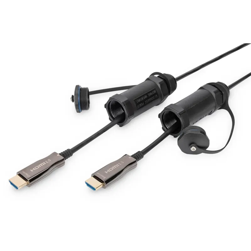 Obsługa formatów do 4K przy 50/60Hz Obsługuje do 120Hz w Full HD HDMI 2.0 (kompatybilny wstecz) HDCP 2.2, HDCP 1.4 Powierzchnia styku: pozłacany Promień zgięcia: 25,4mm Obsługa: HDR, ARC, CEC, HEC Temperatura robocza: od -45°C do +85°C Dopuszczalna siła rozciągania: 1000N Wodoszczelne zamknięcie: IP68 Klasa odporności ogniowej: UL94V-0 AOC - Active Optical Cable