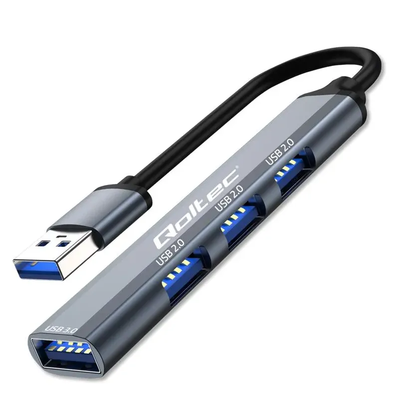 Hub Qoltec adapter USB 3.0 4w1 | USB 3.0 | 3x USB 2.0 Hub Qoltec adapter USB 3.0 4w1 | USB 3.0 | 3x USB 2.0 to hub USB. Rozszerza liczbę portów USB w komputerze. Grafitowy (Graphite) Kolor obudowy USB 3.0.