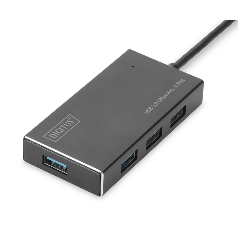 Hub/Koncentrator DIGITUS 4-portowy USB 3.0 SuperSpeed, aktywny, aluminium z kategorii huby usb. Obsługa transmisji danych z prędkością do Super Speed (5 Gbps);Zasilacz 5V/2A (Micro USB 2.