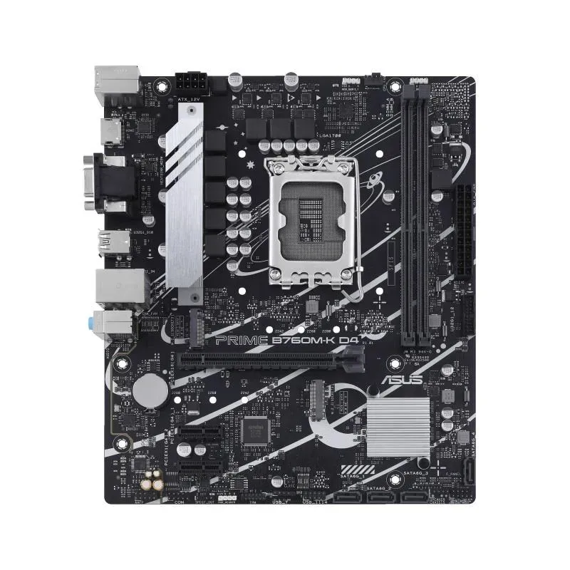 Płyta Asus PRIME B760M-K D4 /B760/DDR4/SATA3/M.2/USB3.0/s.1700/mATX to płyta główna Intel LGA 1700. Stanowi podstawę zestawu komputerowego z procesorami Intel 12./13./14. generacji.