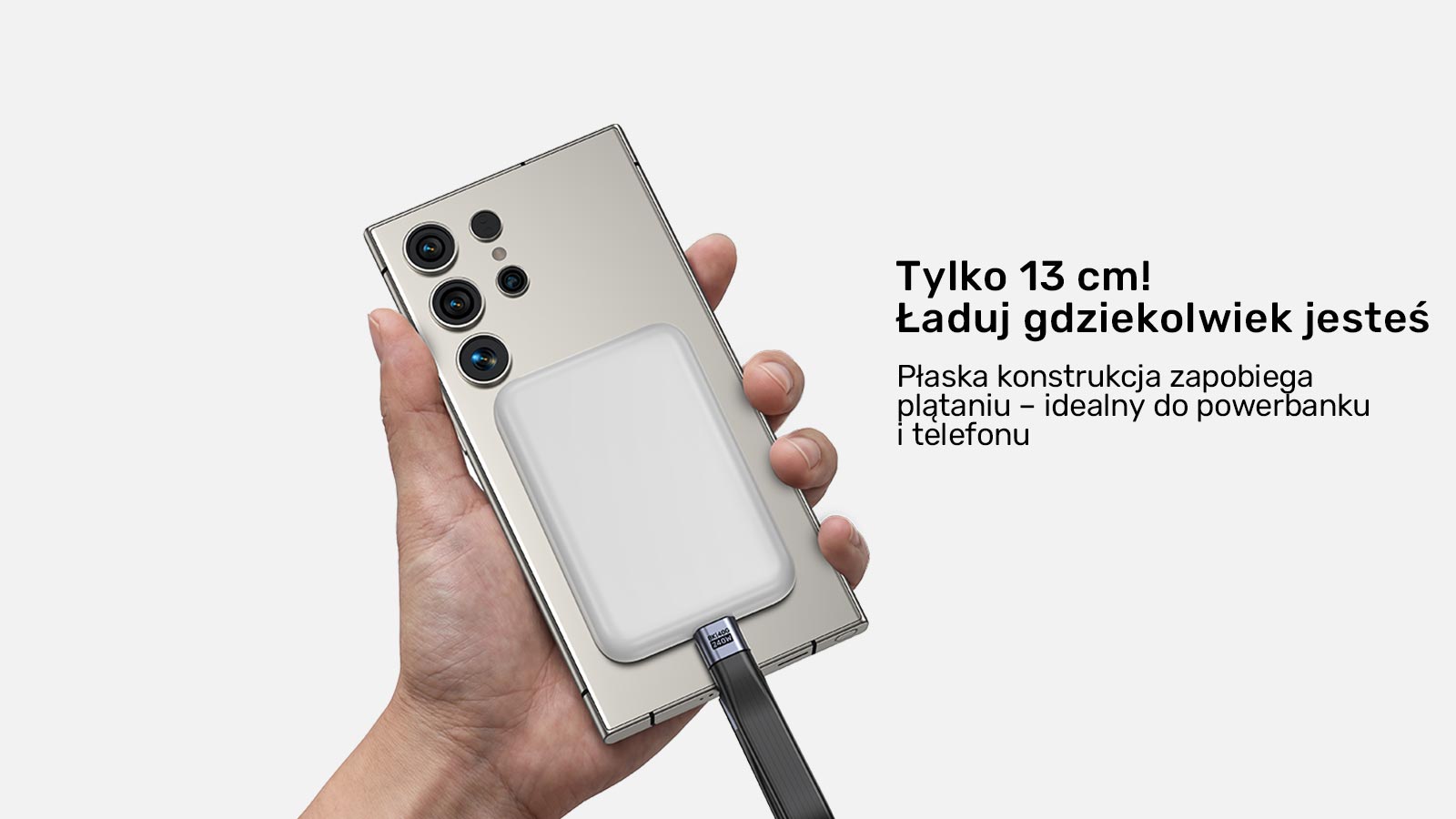 - Forma dopasowana do mobilnościKrótki kabel USB-C (0,13 m) nie zajmuje miejsca i nie przeszkadza w codziennym użytkowaniu.