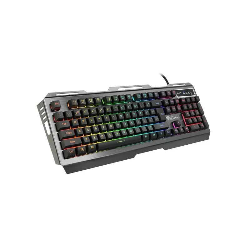 RHOD 420 – MOCNA, FUNKCJONALNA I EFEKTOWNA Gracze szczególnie doceniają ten sprzęt, który przede wszystkim ułatwia rozgrywkę poprzez swoją funkconalność. Dobrej jakości klawiatura powinna być funkcjonalna i wytrzymała na niezliczoną ilość kliknięć, oczywiście jeszcze lepiej gdyb będzie przy okazji miała ciekawy design i podświetlenie Genesis Rhod 420 RGB została wyposażona w ciche i trwałe przełączniki o mechanizmie membranowym, w funkcje anti-ghosting dla 19 klawiszy, 6 strefowe podświetlenie z efektem RGB oraz 12 przycisków funkcyjnych a to wszystko zostało zamknięte w wytrzymałej, aluminiowej obudowie, podkreślającej jej gamingowy charakter. CECHY PRODUKTU - 6-strefowe podświetlenie RGB (6-strefowa zmiana koloru) - anti-ghosting dla 19 klawiszy - solidna aluminiowa obudowa - składane nóżki umożliwiają regulację kąta nachylenia klawiatury - 12 klawiszy multimedialnych - klawisze w technologii "Double injection" gwarantują dożywotnią odporność na ścieranie liter