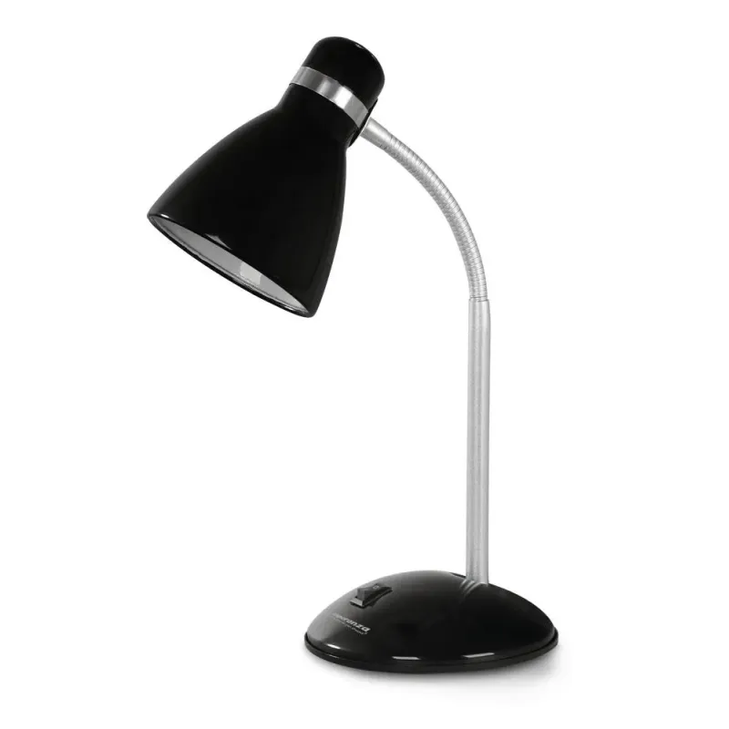 Lampka biurkowa z dużą, stabilną podstawką. Elastyczne ramię umożliwia ustawienie lampki pod dowolnym kątem. W lampce można instalować żarówki LED z gwintem E27 i mocą do 12W. Moc żarówki: GLS, CFL - max 25W Moc żarówki : LED – max 12W Zasilanie: 220-240V/50Hz Długość kabla zasilającego: ok. 1,2m Elastyczne ramię Przełącznik włącz/wyłącz