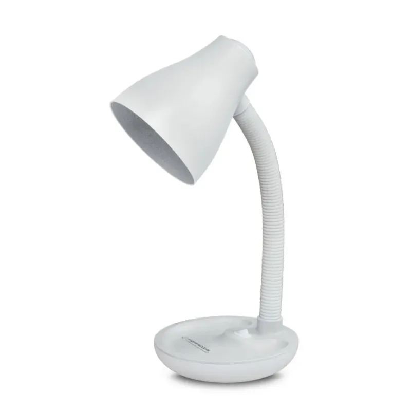 Lampka biurkowa z dużą, stabilną podstawką. Elastyczne ramię umożliwia ustawienie lampki pod dowolnym kątem. W lampce można instalować żarówki LED z gwintem E27 i mocą do 12W. Moc żarówki: GLS, CFL - max 25W Moc żarówki : LED – max 12W Zasilanie: 220-240V/50Hz Długość kabla zasilającego: ok. 1,2m