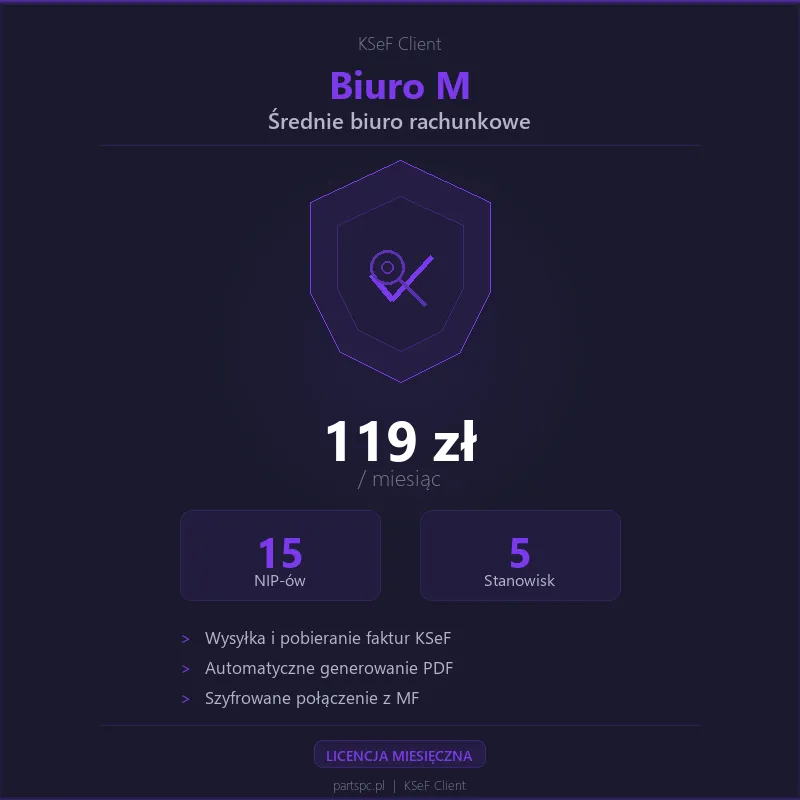 Licencja miesięczna dla średniego biura rachunkowego - rozbudowana obsługa wielu klientów.