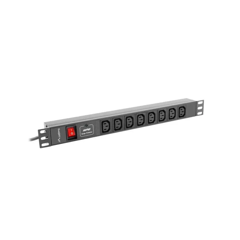 Listwa dystrybucji zasilania (PDU) Lanberg to rozwiązanie dedykowane do zastosowań profesjonalnych w zakresie listew zasilających. Jej konstrukcja została przygotowana wyłącznie do poziomego montażu doczołowego w wszelkich rodzajach szaf serwerowych 19". Listwa dostarcza płynne, niezawodne zasilanie do podpiętych do niej urządzeń zapewniając dodatkowy poziom ochrony. - Zakres napięcia: 220V ~ 250V, - Zakres częstotliwości: 50Hz / 60Hz, - Maksymalna moc pracy listwy: 4000W, - Bezpiecznik: automatyczny. Uaktywniony jeśli świeci się zielony LED, - Max. natężenie pracy przełącznika: 16A, - Max. natężenie ochrony przeciwprzepięciowej: 3000A ~ 5000A, - Materiał wykonania listwy: aluminium anodowane, - Typ wtyczki kabla wejściowego: IEC C20, 16A, - Rodzaj i typ pinów kabla wejściowego: pełne, mosiądz, - Typ i ilość gniazd wyjściowych: IEC C13 x8, - Rodzaj i typ pinów gniazd wyjściowych: pełne, mosiądz, - Długość i rodzaj kabla: 2m, 3 żyłowy, 2.5mm^2 średnicy. Zgodny z VDE,