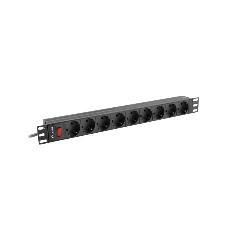 Listwa dystrybucji zasilania (PDU) Lanberg to rozwiązanie dedykowane do zastosowań profesjonalnych w zakresie listew zasilających. Jej konstrukcja została przygotowana wyłącznie do poziomego montażu doczołowego w wszelkich rodzajach szaf serwerowych 19". Listwa dostarcza płynne, niezawodne zasilanie do podpiętych do niej urządzeń zapewniając dodatkowy poziom ochrony. Jest ona wyposażona w 1 fazowe wejście zasilania oraz dodatkowe zabezpieczenie - przesłonę torów prądowych mającą na celu ochronę użytkownika. Listwa cechuje się dodatkową warstwą ochrony poprzez zastosowanie nadmiarowego przekroju kabla co gwarantuje pełną, nieprzerwaną pracę urządzenia podczas pracy na pełnym obciążeniu. Dzięki temu z powodzeniem może być wykorzystywana w profesjonalnym środowisku serwerowym. - Wysokość: 1U, - Zakres napięcia: 220V ~ 250V, - Zakres częstotliwości: 50Hz / 60Hz, - Maksymalna moc pracy listwy: 4000W, - Zabezpieczenie nadprądowe / przeciwprzeciążeniowe: wbudowane w przełącznik, - Max. natężenie pracy przełącznika: 16A, - Materiał wykonania listwy: aluminium anodowane, - Typ wtyczki kabla wejściowego: uni-schuko (DIN 49441), 16A, - Rodzaj i typ pinów kabla wejściowego: pełne, mosiądz, - Typ i ilość gniazd wyjściowych: schuko x9 (DIN VDE 0620-1), - Rodzaj i typ pinów gniazd wyjściowych: pełne, mosiądz, - Długość i rodzaj kabla: 3m, 3 żyłowy, przekrój 1.5mm^2. Zgodny z VDE, - Kolor: czarny.
