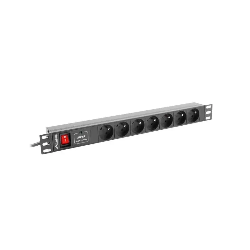 Listwa dystrybucji zasilania (PDU) Lanberg to rozwiązanie dedykowane do zastosowań profesjonalnych w zakresie listew zasilających. Jej konstrukcja została przygotowana wyłącznie do poziomego montażu doczołowego w wszelkich rodzajach szaf serwerowych 19". Listwa dostarcza płynne, niezawodne zasilanie do podpiętych do niej urządzeń zapewniając dodatkowy poziom ochrony. Jest ona wyposażona w 1 fazowe wejście zasilania oraz w szereg dodatkowych zabezpieczeń, takich jak zastosowanie ochrony przeciwprzeciążeniowej, przesłony torów prądowych, mających na celu ochronę użytkownika oraz wprowadzono bezpiecznik automatyczny, co ułatwia ewentualne serwisowanie oraz jego wymianę. Listwa cechuje się dodatkową warstwą ochrony poprzez zastosowanie nadmiarowej średnicy kabla co gwarantuje pełną, nieprzerwaną pracę urządzenia podczas pracy na pełnym obciążeniu. Dzięki temu z powodzeniem może być wykorzystywana w profesjonalnym środowisku serwerowym. Specyfikacja: - Wysokość: 1U, - Zakres napięcia: 220V ~ 250V, - Zakres częstotliwości: 50Hz / 60Hz, - Maksymalna moc pracy listwy: 3680W, - Bezpiecznik: automatyczny. Uaktywniony jeśli świeci się zielony LED - Max. natężenie pracy przełącznika: 16A, - Max. natężenie ochrony przeciwprzeciążeniowej: 3000A ~ 5000A, - Materiał wykonania listwy: niepalny plastik, - Typ kabla wejściowego: uni-schuko, 16A, - Rodzaj i typ pinów kabla wejściowego: pełne, mosiądz, - Typ i ilość gniazd wyjściowych: francuskie x7, - Rodzaj i typ pinów gniazd wyjściowych: pełne, mosiądz, - Długość i rodzaj kabla: 2m, 3 żyłowy, 1.5mm średnicy. Zgodny z VDE, - Kolor: czarny.