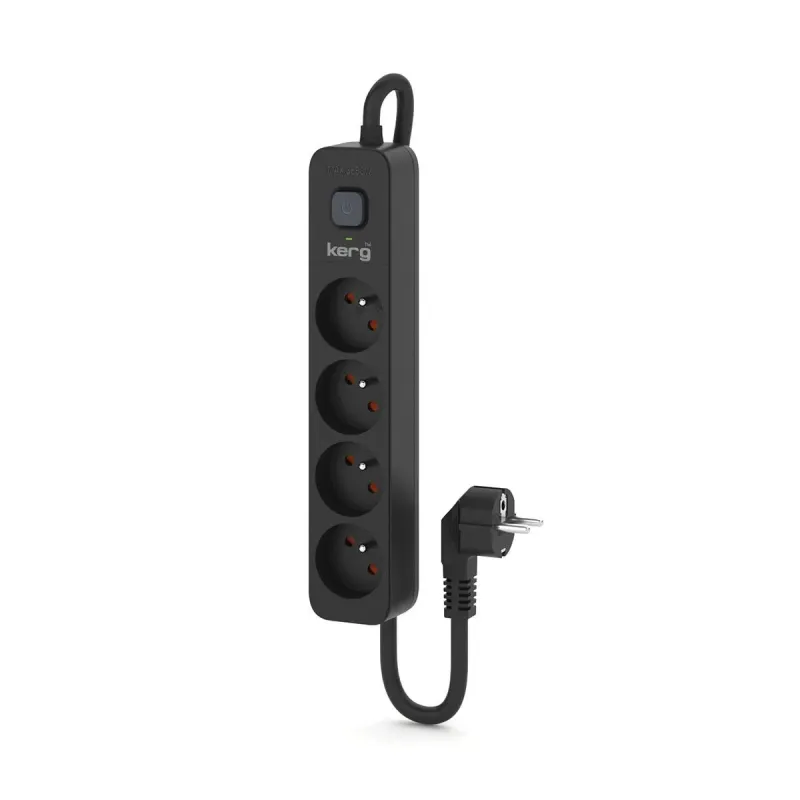 Urządzenie zasilające zabezpieczające KERG z wyłącznikiem 4 gniazda czarne to listwa zasilająca o długości 1.50 m. Umożliwia podłączenie wielu urządzeń do jednego gniazdka z ochroną przepięciową.
