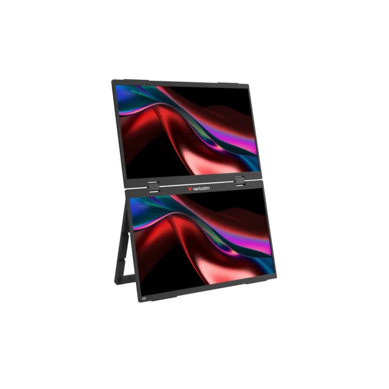 Przenośny monitor Verbatim 15.6 FHD Dual Monitor Essentials to nowoczesne rozwiązanie stworzone z myślą o profesjonalistach, którzy chcą zachować pełną produktywność w dowolnym miejscu. Wyposażony w dwa 15,6-calowe ekrany Full HD (1920 × 1080), zapewnia wyrazisty i szczegółowy obraz dzięki matrycom IPS z szerokimi kątami widzenia (178°) i proporcją 16:9. Pionowy układ ekranów doskonale sprawdza się podczas pracy wielozadaniowej, edycji dokumentów czy programowania.