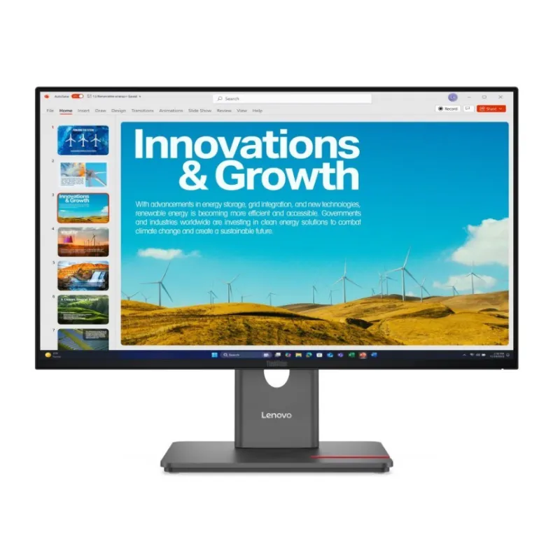 Dopasuj ekran do swojej pracy dzięki zmiennej częstotliwości odświeżania 48120 Hz. Dynamicznie dostosowuje się on do wyświetlanych na nim treści, zapewniając płynniejszy efekt w przypadku szybko poruszających się obrazów lub zmniejszoną częstotliwość w celu oszczędzania energii podczas oglądania nieruchomych grafik. Powiększ każdy szczegół dzięki ekranowi QHD o przekątnej 23,8" monitora ThinkVision P24QD-40. Zasilaj swoje urządzenia na pełnych obrotach dzięki zasilaczowi PD 3.1 o mocy 140 W. Połącz łańcuchowo maksymalnie cztery monitory ThinkVision P24QD-40, aby zapewnić bezproblemową współpracę i bardziej produktywną wielozadaniowość. Zarządzaj zasobami monitora i kontroluj je za pomocą Lenovo Display Fleet Manager (LDFM). To innowacyjne oprogramowanie zapewnia menedżerom IT solidne narzędzia do usprawnionego zarządzania zasobami, wydajnych aktualizacji oprogramowania sprzętowego i scentralizowanej kontroli ustawień.