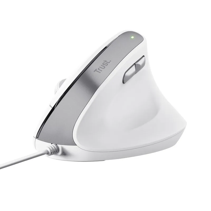 Ergonomiczna mysz z optymalnym kątem nachylenia w pionie dla zmniejszenia napięcia nadgarstka.
