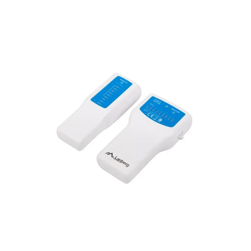 Tester kabli sieciowych Lanberg to wielofunkcyjne urządzenie do testowania przewodów w sieciach telekomunikacyjnych. Urządzenie jest nieodzownym narzędziem każdego instalatora. Pomaga w znaczącym stopniu zaoszczędzić czas w weryfikacji par przewodów sieciowych. Urządzenie głównie służy do pomiaru ciągłości okablowania sieci LAN oraz weryfikacji połączeń wraz z wykrywaniem ewentualnych problemów z zwarciami lub błędnymi połączeniami par. Przy pomocy tego narzędzia można przetestować połączenia przewodów telefonicznych zakończonych złączem RJ-11, skrętek UTP, FTP, SFTP zakończonych wtykami RJ-45. Urządzenie składa się z dwóch części, które powinny być mocowane na końcach testowanego przewodu: - Tester wyposażony w diody, złącza RJ-45, RJ-12/RJ-11 oraz wyłącznik. - Terminator (przystawki) wyposażony w diody, złącza RJ-45 i RJ-12/RJ-11.