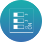 Przełącznik DIP trybu pracy dysków do wyboru sterowania sprzętowego lub programowego i ustawiania typu grupy RAID.