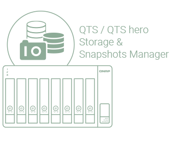 Przy użyciu Menedżera pamięci masowej i migawek systemu QTS / QTS hero skonfiguruj model TL-R1200C-RP jako obudowę pamięci masowej dla serwera QNAP NAS. Tryb rozbudowy pamięci masowej NAS obsługuje różne funkcje NAS, w tym pule pamięci i migawki. Przy użyciu TL-R1200C-RP można w łatwy sposób rozbudowywać pojemność pamięci masowej.