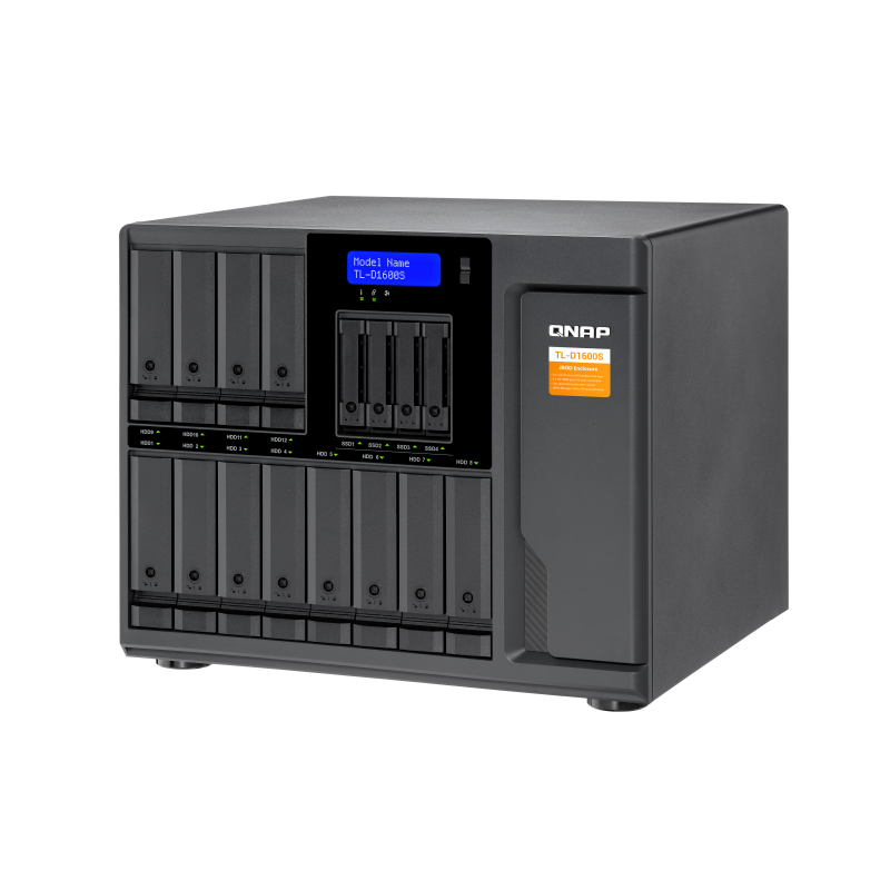 Obudowa dyskowa JBOD TL-D1600S umożliwia tworzenie kopii zapasowych i rozbudowę systemu QNAP NAS, komputerów z systemem Windows® i Ubuntu® oraz serwerów. Model TL-D1600S jest wyposażony w szesnaście 3,5-calowych zatok dyskowych SATA 6 Gb/s, i oferuje kartę QXP PCIe do podłączania obudowy przy użyciu kabla SFF-8088 (lub SFF-8644). Zapewnia niezawodną wydajność odczytu/zapisu, umożliwiając płynne działanie pamięci masowej i tworzenie kopii zapasowych.