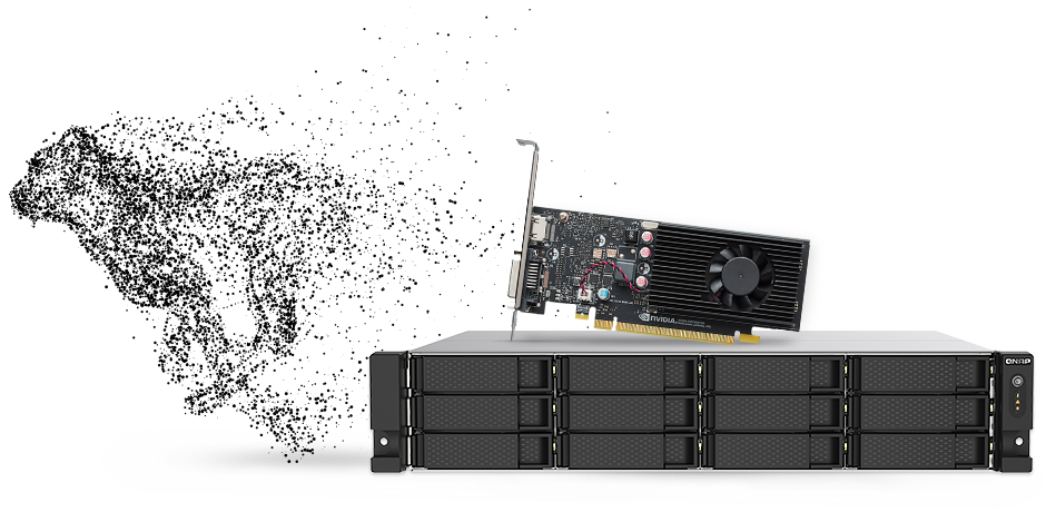 Karty graficzne są zoptymalizowane pod kątem obliczeń i przekształceń graficznych, ale wymagają znacznie więcej energii niż inny sprzęt. Model TS-1273AU-RP obsługuje podstawowe, niskoprofilowe karty graficzne NVIDIA® GeForce® (np. GT 1030 lub GT 1050), które nie wymagają dodatkowego zasilania. Instalacja karty graficznej może zwiększyć wydajność takich aplikacji, jak tych do edycji wideo, transkodowania wideo 4K, przetwarzania obrazów w systemie QTS oraz wydajność maszyn wirtualnych za pośrednictwem funkcji GPU passthrough.