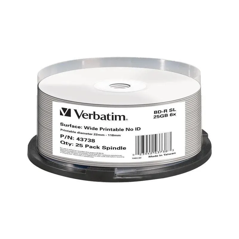 Płyty BD-R Verbatim 25GB X6 DL+ printable NO ID (Cake 25) z kategorii płyty blue-ray. Profesjonalne nośniki optyczne Verbatim można rozpoznać po znakuDataLifePlus.