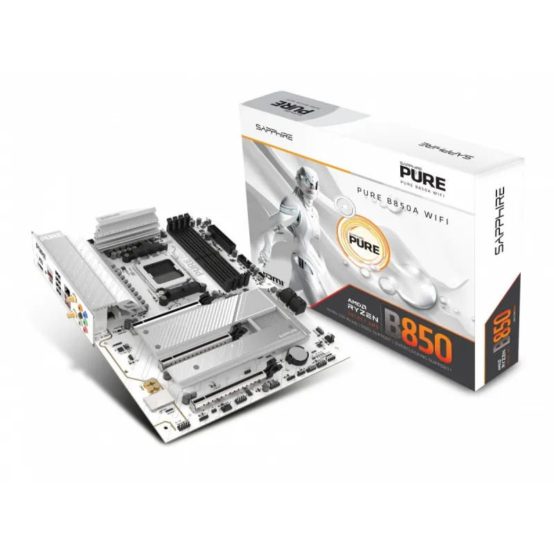 Oto ekscytujące rozszerzenie wysokowydajnego sprzętu SAPPHIRE w postaci płyty głównej SAPPHIRE NITRO+ B850A WIFI 7 opartej na chipsecie AMD B850. Została ona zaprojektowana w nowoczesnym i eleganckim stylu industrialnym z charakterystycznymi geometrycznymi akcentami i metalicznym wykończeniem.
