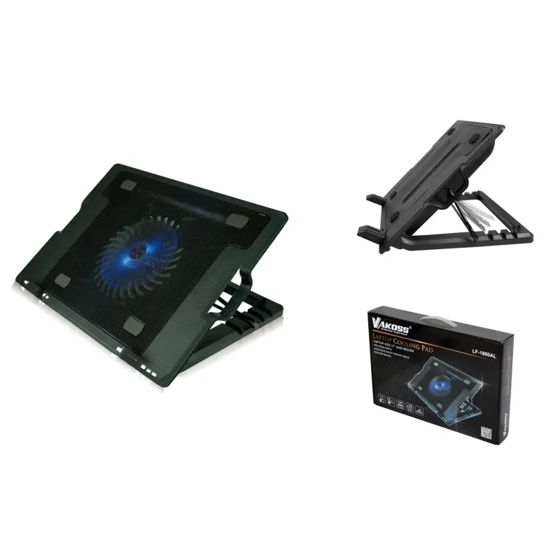 wymiar laptopa: 17 cali, lub mniejszy możliwość ustawienia urządzenia pod wieloma kątami rozmiar wiatraka: 130*130mm prędkość: 1500 obr./min. zasilanie poprzez port USB(DC 5V) moc znamionowa: 1.5W pomaga w usunięciu gorącego powietrza wytwarzane pod spodem notebooka zabezpieczenie antypoślizgowe , podświetlenie LED karton: 12 szt.