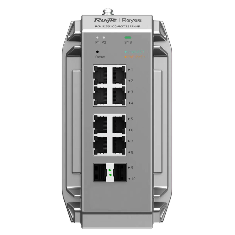 Ruijie Reyee RG-NIS3100-8GT2SFP-HP | Switch zarządzalny przemysłowy, 10 portów, 8xGE, 8xPoE, 240W, 2xSFP, L2, Cloud