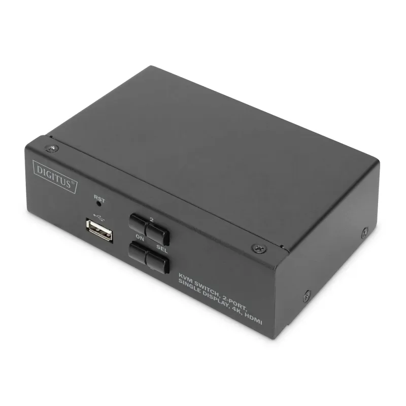 Rozdzielczość UHD: 4K/30Hz (3840 x 2160p)/Subsampling: YUV 4:4:4 Wejścia: 2x wejścia HDMI, 2x USB B, 2x audio 3,5mm Wyjścia: 1x HDMI, 2x USB A (mysz, klawiatura), 2x jack 3,5mm (mik. głośn.) Dodatkowe złącze z przodu: 1x USB A dla kolejnych urządzeń np. drukarka Wersja HDMI®: 1.4b Specyfikacja USB: zgodny z USB 2.0 (FullSpeed) Obsługuje formaty audio: Dolby True HD, DTS HD Master Audio Przełącznik na przednim panelu lub za pomocą klawiszy skrótu Dioda LED stanu na przednim panelu pokazuje aktualną konfigurację Urządzenie pracuje niezależnie od platformy lub systemu W zestawie 2x kabel KVM (HDMI, USB, Audio)