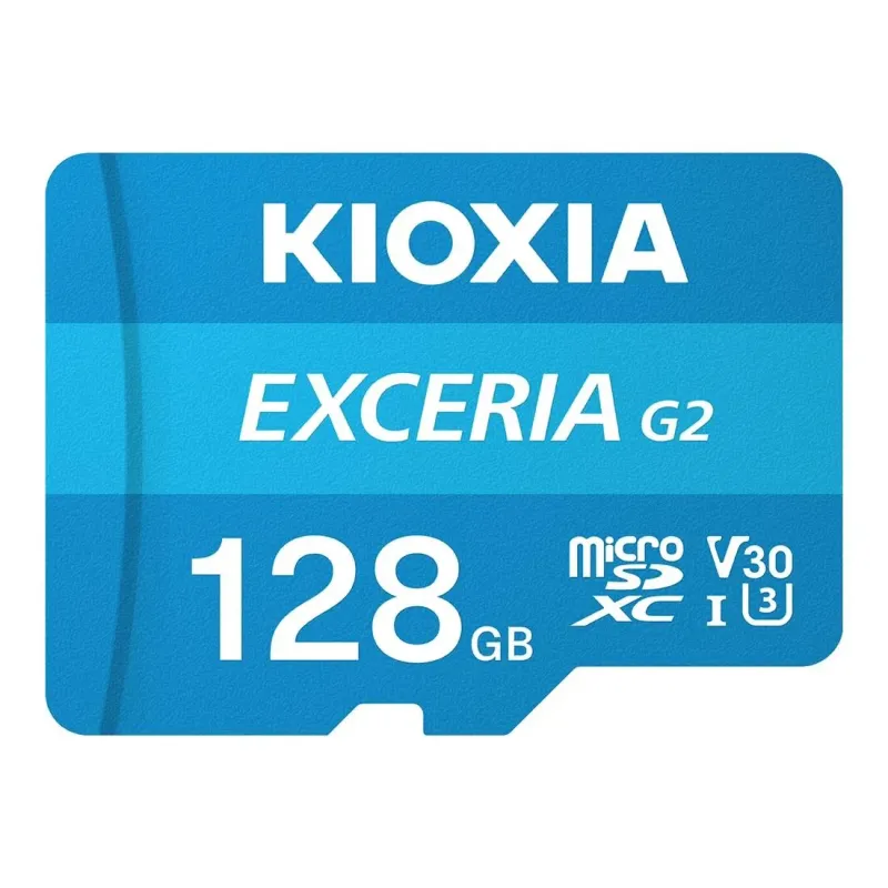 Karta pamięci MicroSDXC KIOXIA EXCERIA G2 128GB UHS-III Class 10 V30 + adapter z kategorii secure digital (sd). Standard pamięci: MicroSDXC, kolor: Niebieski, gwarancja: 60 mies.