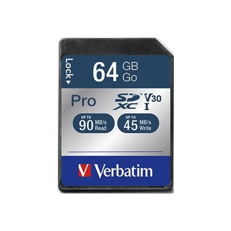 Karta pamięci SDXC Verbatim Pro U3 64GB (90/45 MB/s) Class 10 UHS-1 V30 z kategorii secure digital (sd). Standard pamięci: SDXC, kolor: Czarny, gwarancja: 24 mies.
