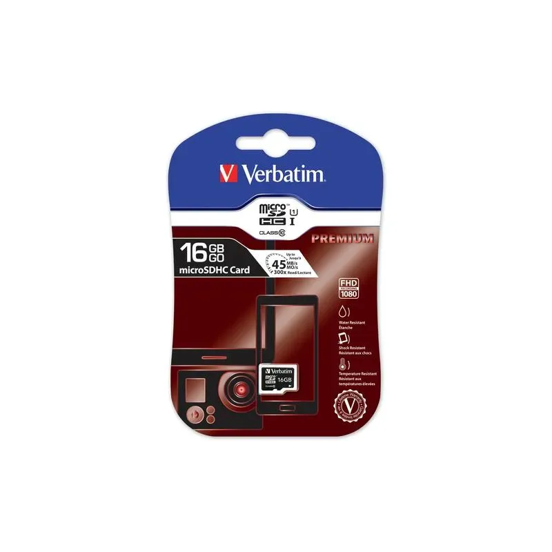 Karta pamięci MicroSDHC Verbatim 16GB Class 10. Pojemność pamięci: 16 GB. Rodzaj pamięci: Karta pamięci. Standard pamięci: MicroSDHC. Rozszerza pamięć aparatów, kamer i urządzeń mobilnych.