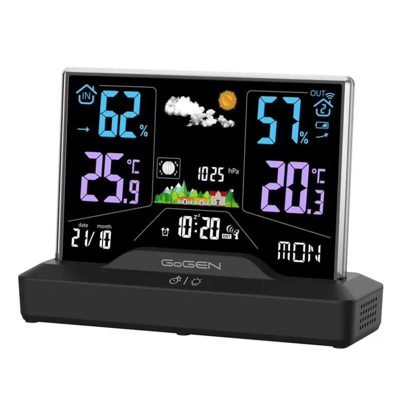 Prognoza pogody z animacją Wewnętrzna i zewnętrzna wilgotność powietrza Fazy Księżyca, Kalendarz, Budzik Ciśnienie barometryczne Możliwość podłączenia aż trzech zewnętrznych czujników Rozszerzona gwarancja do 4 lat Kompatybilny zewnętrzny czujnik: GOGMESENZOR1
