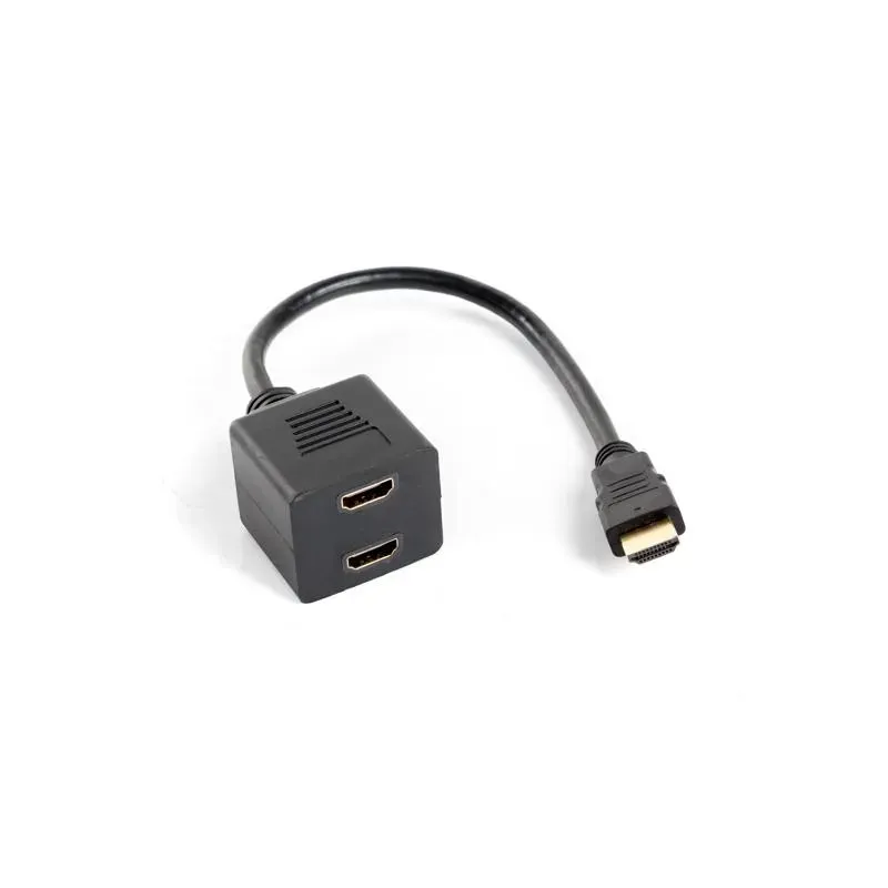 Dwuportowy pasywny spliter HDMI Adapter rozdziela jeden sygnał HDMI na dwa odbiorniki Umożliwia rozdzielenie sygnału z HDMI do 2 oddzielnych urządzeń Adapter jest pasywny, sygnał przekazywany jest na jeden podłączony do adaptera Porty: dwa gniazda żeńskie HDMI 19PIN, jeden port męski HDMI 19PIN Interfejs standardowy: Kompatybilny ze wszystkimi wersjami HDMI