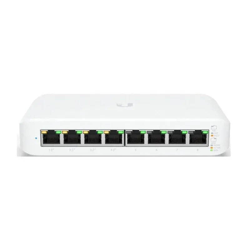 8 portów Gigabit RJ-45, w tym 4 porty 802.3at PoE+ Zarządzanie przez UniFi Controller (5.13.10 lub nowszy) Zewnętrzny zasilacz 60 W Możliwość montażu na ścianie Zapewnia całkowitą nieblokująca przepustowość do 8 Gb/s Przepustowość przełączania wynosi nawet 16 Gb/s Max. power consumption: 8W Power method: 54V DC, 1,1A power adapter Power supply: External 54V/60W power adapter Supported voltage range: 50—57V DC Management interface: Ethernet In-Band PoE interface: (4) PoE/PoE+ (Pins 1, 2+; 3, 6-) Max. PoE+ wattage per port by PSE: 30W PoE budge: 52W Modes: SMB layer 2 PoE GbE switch Operating temperature: -15 to 40° C Operating humidity: 10 to 90% noncondensing Certifcations: CE, FCC, IC